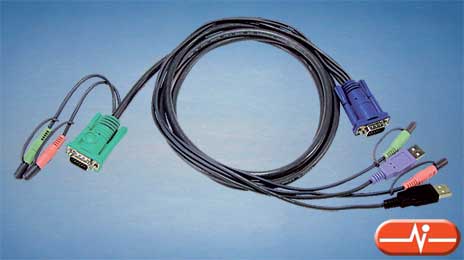 Cable 3 en 1, con dos conectores macho USB A, un VGA y dos Jack para audio y micro por un extremo y conectores macho SPHD y dos Jack para audio y micro por el otro extremo, para la conexión de una CPU USB con audio a un conmutador USB con audio. Está disponible en distintas longitudes.