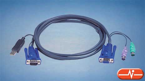 Con dos conectores PS/2 macho y un VGA hembra por un extremo y un conector USB macho y VGA macho por el otro extremo, para la conexión de una CPU USB a un conmutador PS/2.
