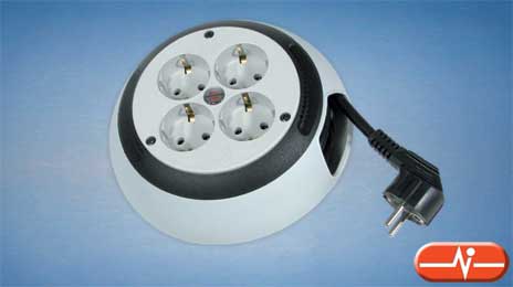 Regleta de alimentación que proporciona cuatro tomas. Dispone de un cable de 3 metros de longitud que es recogido manualmente con el recogecable que incorpora la regleta.