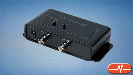 Amplificador profesional de largo alcance para la transmisión de la señal de vídeo a más de 1000 metros sobre cable coaxial RG59. Incorpora control de ajuste para brillo y contraste.