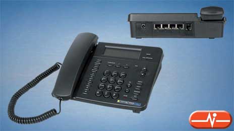 Completo y moderno teléfono IP de sobremesa que dispone de dos puertos RJ45 10/100 y un puerto RJ11 para la línea analógica. Opera tras NAT y hasta con 10 números E.164 permitiendo búsqueda automática de puntos centrales de llamada (gatekeepers) y su selección alternativa. Dispone de volumen ajustable de llamada, altavoz, auricular y pantalla con fecha donde se identifica la hora y duración de llamada entrante. Está equipado con 12 teclas numéricas, 4 teclas de operación LCD, 10 teclas para memorias y funciones multilíneas, además de 8 teclas de función.