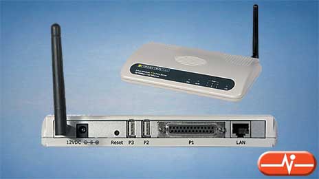 Servidor de impresión inalámbrico para dos impresoras USB y una impresora en paralelo. Incorpora dos puertos USB, un puerto paralelo, un puerto de red RJ45 a 10/100 Mbps y la antena de 2,4 GHz compatible con el estándar 802.11b/g.