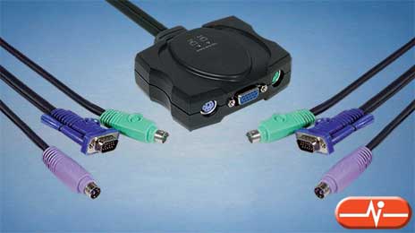 Conmutador en PS/2 que permite utilizar desde un solo puesto, formado por monitor, teclado y ratón, dos cpu´s. Incorpora los cables de conexión del conmutador a las distintas cpu´s.