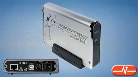Atractiva caja externa para discos duros IDE de 3,5”, con un panel frontal luminoso que muestra la actividad y el estado. Está realizada en aluminio de excelente calidad e incorpora conexión USB 2.0. Se puede conectar a una red LAN a través del puerto RJ45 de forma que se convierte en una caja externa N.A.S.