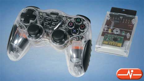 Este mando inalámbrico de 2,4GHz, totalmente transparente, es compatible con la consola PS2. Es un mando Plug-n-Play ya que no necesita ajustes y automáticamente reconoce la frecuencia del mando con solo pulsar un botón situado en lo alto del mando.