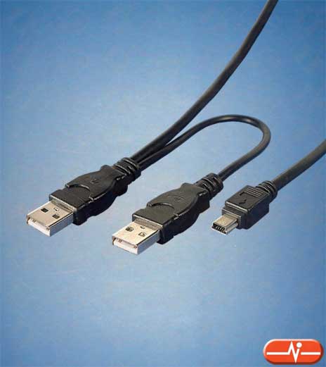 Cable doble de conexión USB. Especialmente indicado para cajas externas de discos de 2,5'' que se alimenten de un puerto USB.