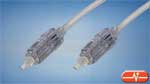 Cable óptico, con conectores Toslink, transparente para realizar conexiones multimedia digitales. Se ilumina cuando está siendo utilizado. Disponible en distintas longitudes.