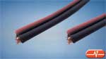 Bobinas de 100 metros de cable para conectar dispositivos de audio, tales como altavoces, de dos hilos en color rojo y negro. Están disponibles en secciones de diferentes grosores.