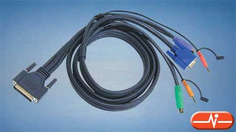 Cable para la conexión de una CPU PS/2 con audio a un KVM con audio. Con conectores Macho de VGA, dos de PS/2 y dos Jack para audio y micro por el lado de la CPU a un conector DB25 macho por el lado del KVM. Disponible en distintas longitudes.