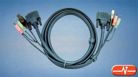 Con USB A, DVI-D y dos Jack para audio y micro por un extremo y USB B, DVI-D y dos Jack para audio y micro por el otro, para la conexión de una CPU USB con audio a un conmutador USB con audio.