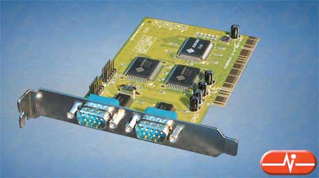 Tarjeta PCI con 2 puertos serie con una velocidad de transferencia de datos de 921 Kbps.