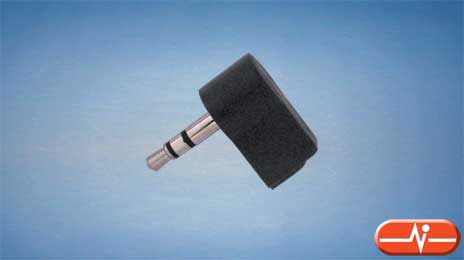 Conector Jack estéreo macho de 3,5 milímetros en ángulo de 90º con protector para cable.