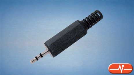 Conector Jack estéreo macho de 2,5 milímetros con protector para cable.