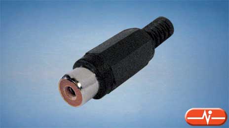 Conector RCA hembra para audio y vídeo con protector de cable. Disponible en varios colores.