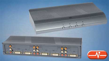 Con este switch de alta calidad, podrá conectar cuatro dispositivos con conexión DVI-D y seleccionar manualmente cual de ellos quiere utilizar. Incluye también conexiones RCA para audio.