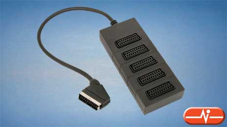 Adaptador de 5 entradas a 1 salida de Euroconector, para la conexión de múltiples entradas de vídeo a un solo televisor.