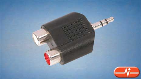Adaptador de audio con conector jack macho estéreo de 3,5 milímetros y 2 conectores hembra RCA. Fabricado en carcasa negra inyectada.