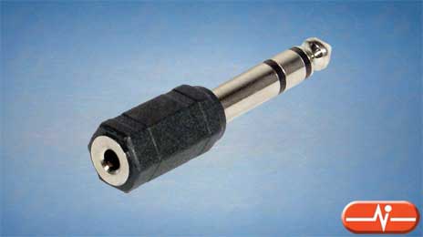 Adaptador de audio con conector hembra de 3,5 milímetros y conector macho de 6,35 milímetros Fabricado en carcasa negra inyectada.
