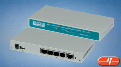 Router ADSL con switch de cuatro puertos y servidor de impresión para impresora USB con el que es posible compartir no solo el acceso a Internet, si no que también, una impresora USB con todos los equipos que forman la red.