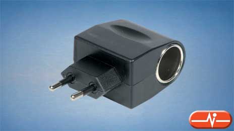 Adaptador de enchufe de pared a socket de mechero de coche, en el que es posible conectar cualquier adaptador o dispositivo que se utilice en el coche y que ahora, gracias a este adaptador, también se podrán usar en casa.