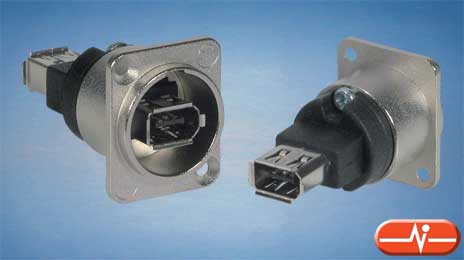 Este cambiador de género Firewire, de chasis, es reversible y permite conectar dos cables macho a sus conectores Firewire de 6 pines hembra.