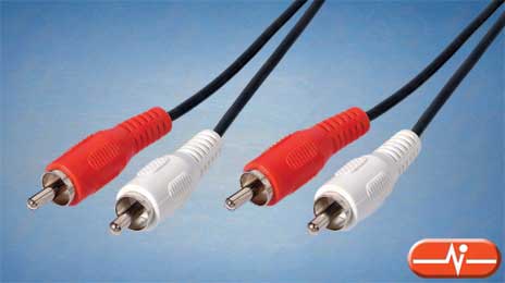 Cable de audio con dos conectores RCA macho por cada extremo para la conexión en dispositivos multimedia.