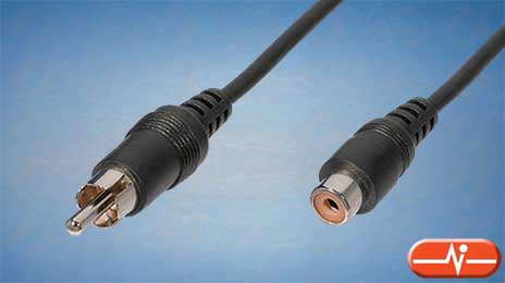 Cable de extensión para audio con conectores RCA macho y hembra que permite prolongar la longitud de un cable existente.