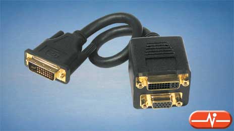 Con este cable es posible conectar monitores o pantallas con conexión DVI-I y VGA, simultáneamente, a un dispositivo con salida DVI-I, para ver la misma imagen en ambos.