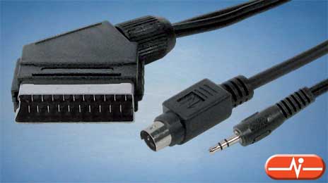 Cable adaptador de Euroconector a un cable con conector SVHS, de cuatro pines para la transmisión de la señal de vídeo, y a otro con conector Jack de 3,5”, para la transmisión de la señal de audio. Está disponible en distintas longitudes.