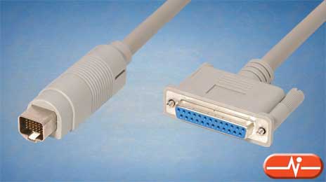 Cable SCSI externo para comunicación de datos con un conector macho HDI30 inyectado y otro conector hembra DB-25 inyectado y con una longitud de 0,60 metros.