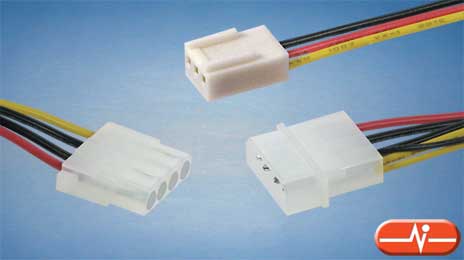 Cable adaptador de la toma de 4 pines de la fuente de alimentación, dos conectores uno macho y otro hembra, a un conector de tres pines para la alimentación de los ventiladores internos de la CPU.