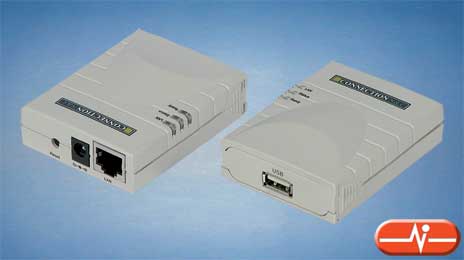 Servidor de impresora multifuncional que facilita la conexión y gestión de impresoras en su red con una velocidad de transferencia 10/100 Mbs. a través de USB 2.0.