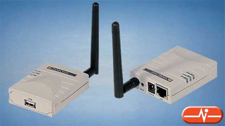 Servidor de impresión inalámbrico específico para impresoras Multifunción USB. Incorpora un puerto USB, un puerto de red RJ45 a 10/100 Mbps y la antena de 2,4 GHz compatible con el estándar 802.11b/g.