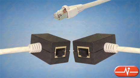 Adaptador RDSI cerrado a través de dos resistencias de 100 Ohmios. Dispone de 1 entrada RJ45 macho y 2 salidas RJ45 hembras.