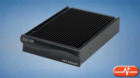 Este refrigerador para disco duro está fabricado en aluminio lo que mejora la disipación del calor. El diseño de este refrigerador excluye los ventiladores lo que reduce el nivel de ruido al mínimo y el material usado en el interior del refrigerador reduce las vibraciones del disco duro. Disponible en color gris y negro.