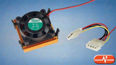 Cooler de bajo costo para procesadores 486 con fijación por medio de clips de montaje en plástico.