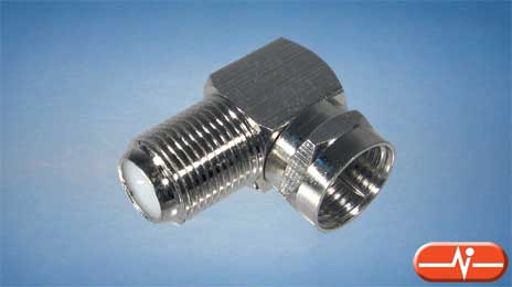 Adaptador macho a hembra en ángulo de 90º con conectores de tipo F.
