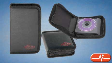 Práctico archivador de CD's, tipo cartera, en imitación de piel. Se sirve en dos modelos.