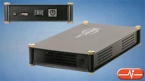 Conector USB tipo "B" hembra | 1 | Conector Mini-Din 6 hembra | 1 | Conector IDC 40 hembra, negro | 1 | Conector de alimentación 5,25" de 4 p. macho | 1 | Tipo de carcasa | Aluminio | Color | Negro | > | Incluye cable de conexión al PC |