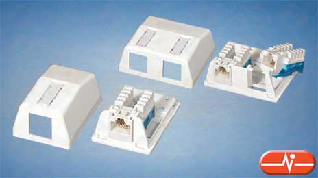 Esta caja de superficie de rosetas RJ45 de embutir para conectores HK categoría 5E le permite instalar embellecedores Krone de la serie EKO. Se compone de chasis para montaje, conector y embellecedor de color marfil.