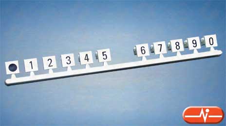Tira con la numeración de unidades, de 0 a 9, para ser insertadas en los huecos de identificación de las regletas para pares de telefonía KN 1105 de KRONE.