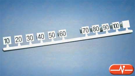 Tira con la numeración de decenas, de 10 a 100, para ser insertada en los huecos de identificación de las regletas para pares de telefonía KN 1105 de KRONE.