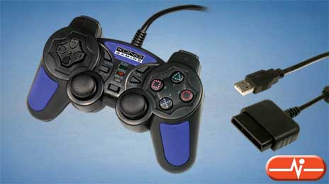 Controlador de juegos para PlayStation 2™ y PC. Con sistema de vibración y dos mandos omnidireccionales.