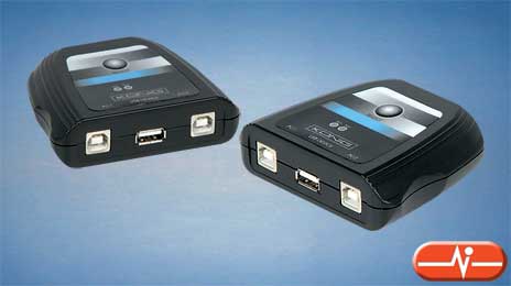 Conmutador manual USB 2.0 que permita conectar un dispositivo USB a varios equipos y compartir su uso mediante la selección manual. Un led se ilumina indicándonos que equipo esta usando el dispositivo.