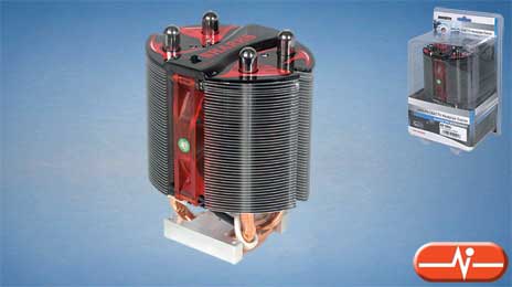 Construido para controlar la velocidad máxima, si se monta en un sistema “Overclocking”, y la mínima, en sistemas silenciosos. Con una única “Heat pipe” provista de una tecnología de alta conductividad térmica y con unas técnicas especiales de soldadura que mejoran el contacto entre las diferentes partes que componen el cooler. El ventilador que incorpora, mejora la eficiencia en la disipación térmica del conjunto. Acabado en una llamativa combinación de color rojo y negro.