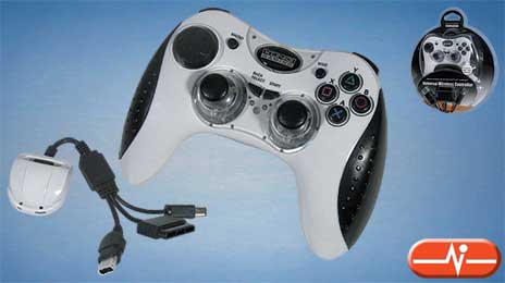 Este mando inalámbrico de 2,4GHz es compatible con tres modelos diferentes de consolas ya que el receptor está equipado con las conexiones para la Xbox, la PS2 y la Game Cube. También es posible insertar una tarjeta de memoria de la Xbox en el receptor. Es un mando Plug-n-Play ya que no necesita ajustes y automáticamente reconoce la frecuencia del mando y a cual de las consolas está conectado.