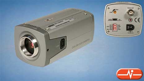 Cámara CCTV en color para uso profesional, con una resolución de 480 líneas. Permite intercambiar las lentes según sus necesidades.
