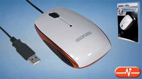 Ratón óptico de tamaño mediano, con tres botones, conexión USB y sensor de 800 DPI. Trabaja sobre la mayoría de las superficies a 3000 fps y tiene un acabado pulido en blanco.