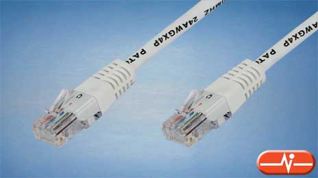 Cable de red blanco, de par trenzado, para dispositivos de red, Categoría 5E, con conectores RJ-45. Disponibles en diferentes longitudes.