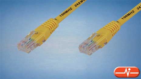 Cable de red amarillo, de par trenzado, para dispositivos de red, Categoría 5E, con conectores RJ-45. Disponibles en diferentes longitudes.